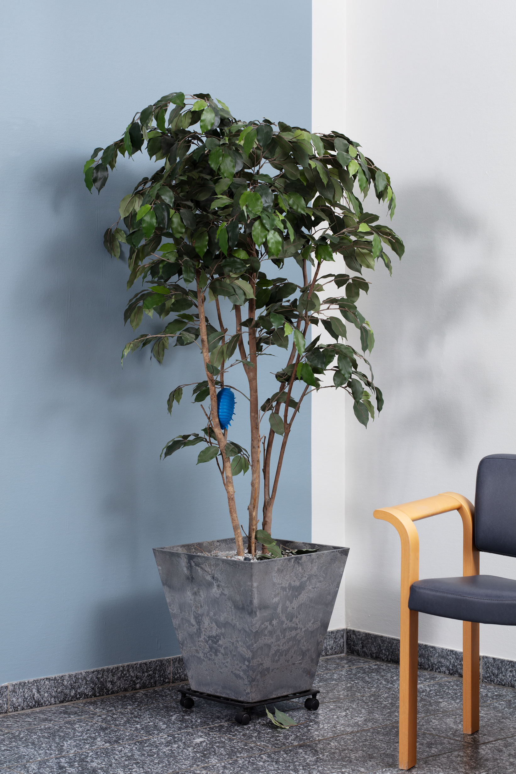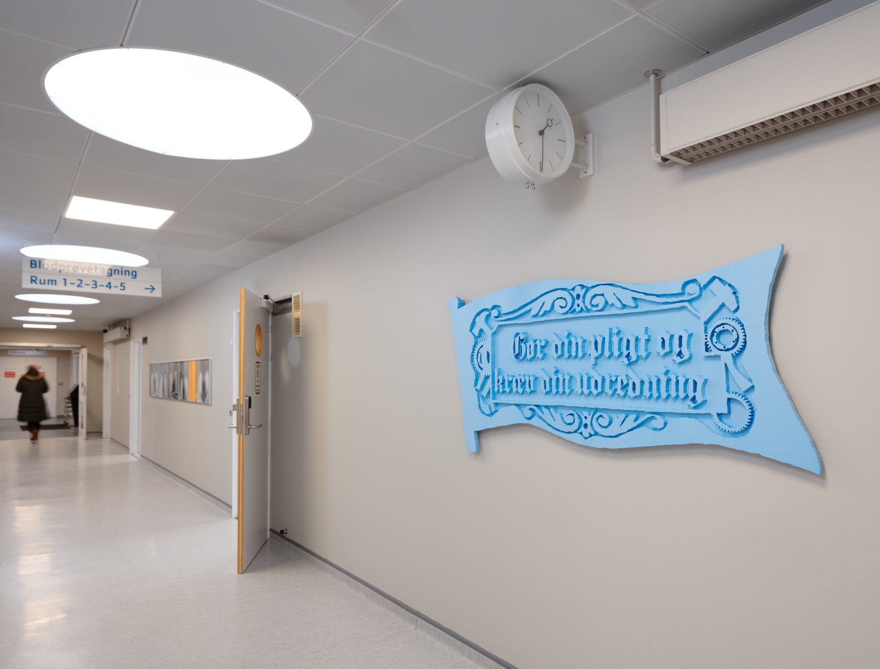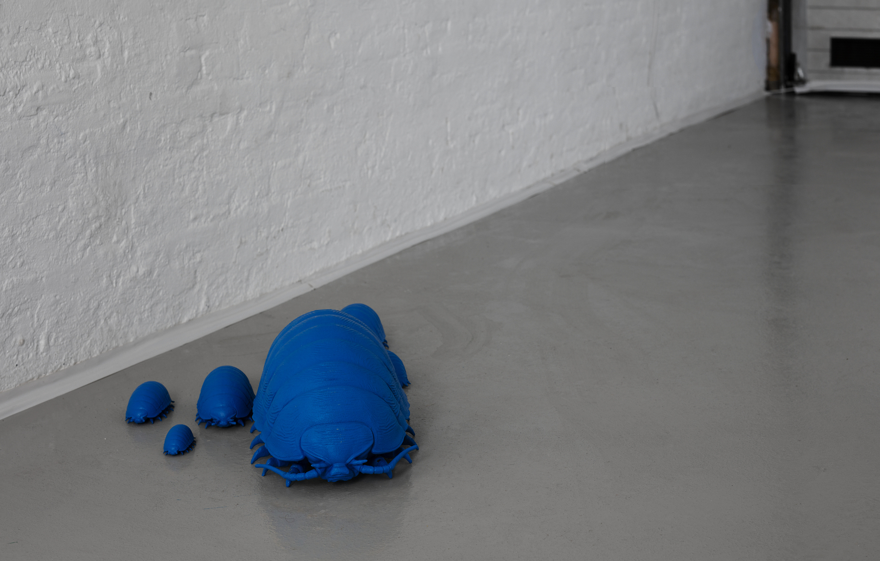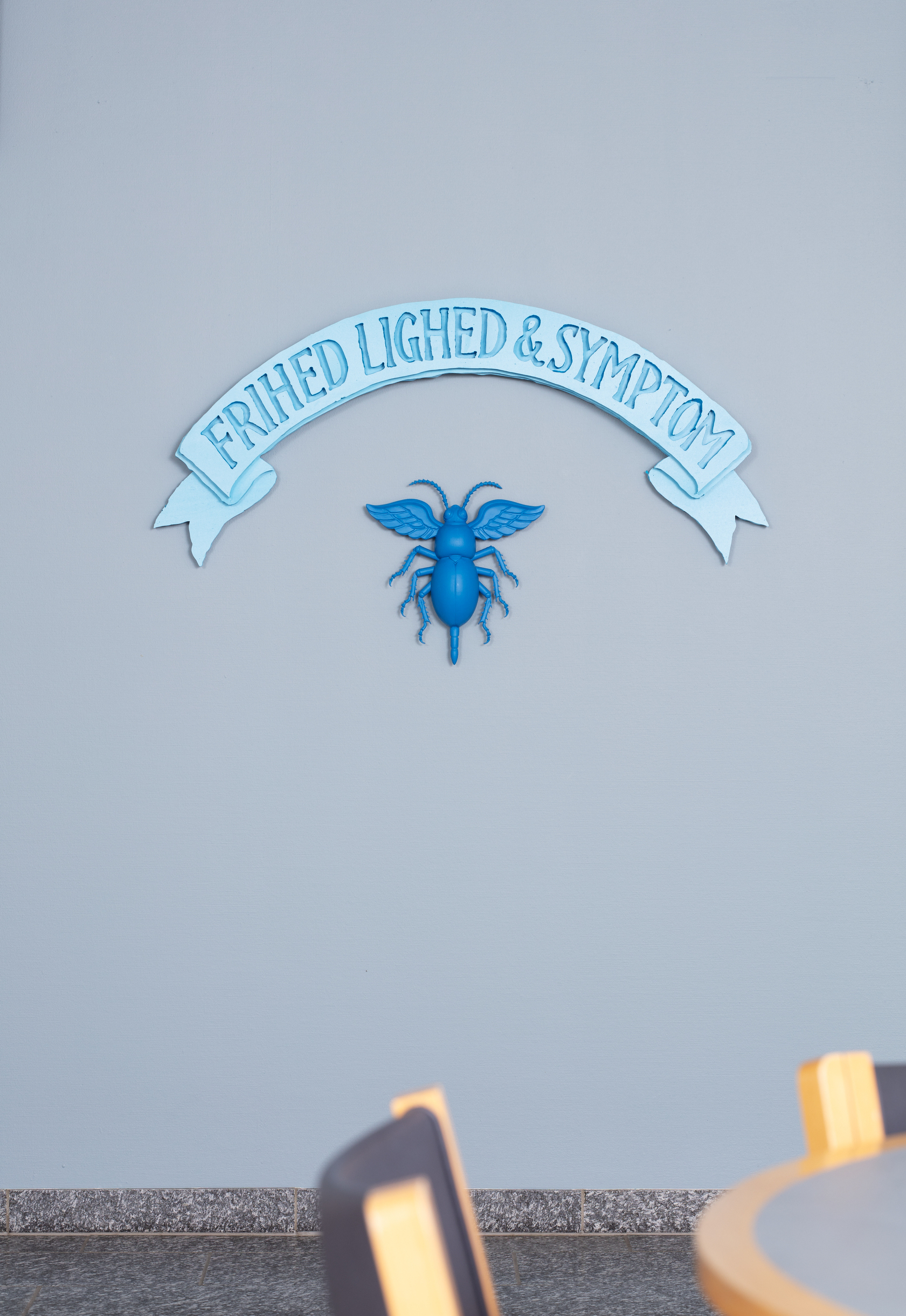 Projektet “Frihed, lighed & sundhed” bliver præsenteret på udstillingen “Forstadier” i Ringsted Galleriet og på Ringsted Hospital, hvor værkerne går i direkte dialog med hospitalets virkelighed. Udgangspunktet er hverdagslige billeder – medicinsk udstyr, hospitalsgange, uniformer – der bruges til at forestille sig, at velfærdsstaten kunne se anderledes ud. Projektet består af kropsstore, sammenrullede og sårbart sovende 3D-printede skulpturer samt håndskårne relieffer, der tager form efter AI-genererede skitser. I installationen indgår videoen “Leddyrsomsorg”, der forestiller et fremtidigt sundhedsvæsen, hvor kæmpemæssige blå bænkebidere – blå som medicinsk udstyr, blå som Ringsted Hospitals logo – har overtaget de roller, automatisering og AI ellers tildeles i sundhedspolitiske fremtidsvisioner. Kameraet bevæger sig i en lang, flydende bevægelse hen over dem, og der opstår en bevidst tvetydighed: de er fremmede nok til at forstyrre, men tilstrækkeligt materielt tilstedeværende til at stille den ubehagelige tanke, at dette kunne være et svar.