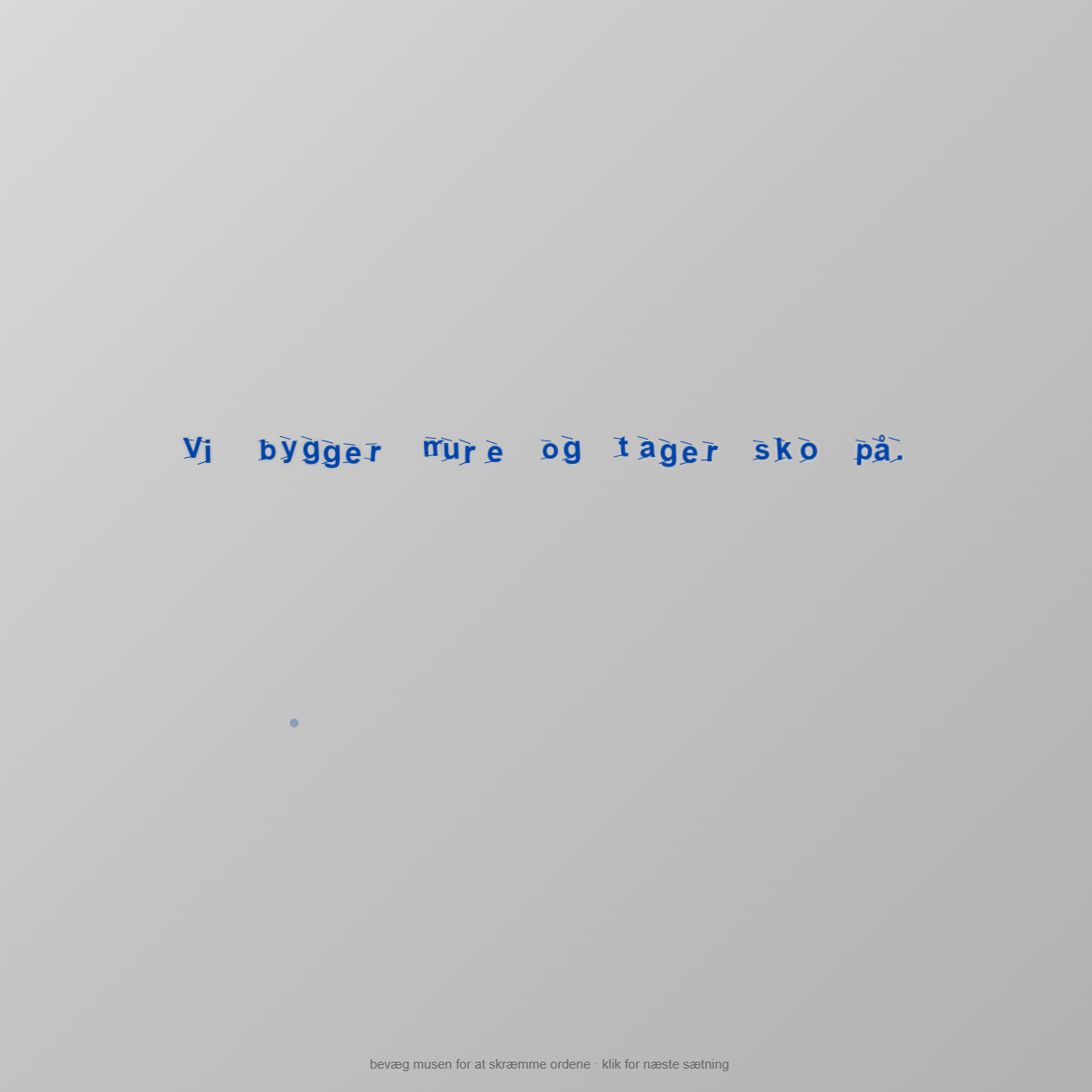 Min forpligtelse er billedpolitisk og kunstnerisk skarphed: at hvert billede, hver tekst, hver lyd, hver tale og hver sammenstilling er så præcis som muligt i det, den gør. Det betyder, at billedet skal kunne bære sin egen vægt. At teksten skal supplere frem for overskrive billedets betydning og samtidig kunne stå som selvstændigt kunstnerisk materiale, ikke blot som kontekstualisering. At lyd og tale skal skabe friktion og ikke blot undermalning eller forklaring. At sammenstillingen af forskellige elementer og modaliteter skal producere en produktiv friktion – en modstand mellem delene, der inviterer beskueren til at skabe sin egen forbindelse frem for at modtage en færdig betydning – og ikke blot være additiv. Uden formel præcision bliver spekulationen uforpligtende; uden spekulation bliver præcisionen steril og projektet didaktisk. At udholde begge dele samtidig – uklarheden i det, der endnu ikke er forstået, og den formelle disciplin i det, der allerede er skabt – er det, praksis forsøger. De teoretiske referencer i denne tekst er selv en del af den bevægelse og vil blive erstattet af andre, når arbejdet kræver det.