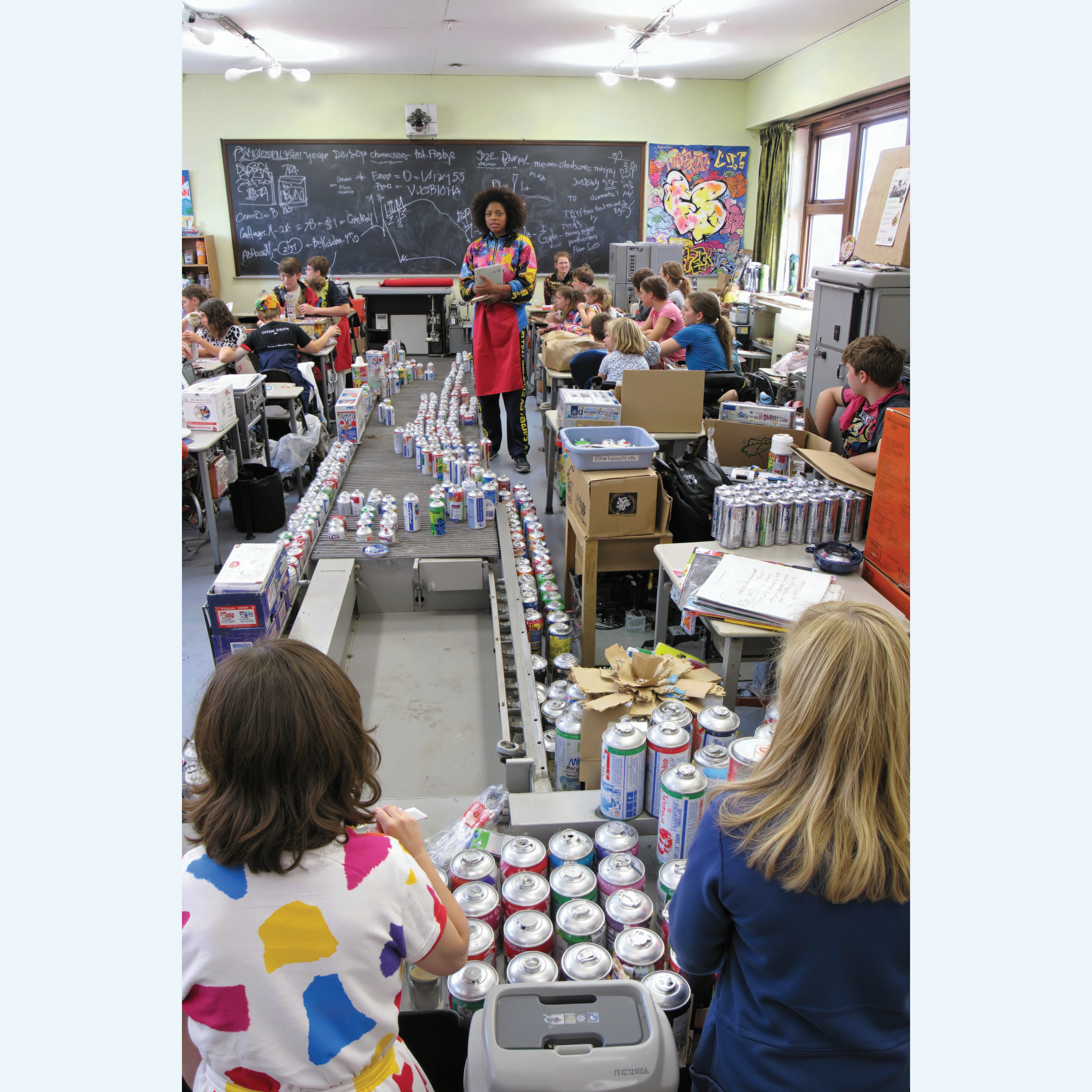 In Aarhus’ public schools in the early 1980s, classrooms were equipped with spray can assembly lines as an integrated part of teaching. Production took place alongside traditional reading activities, with pupils alternating between academic tasks and hands-on manufacturing of spray cans for local use. This model relocated industrial production from distant factories to the classroom, combining theoretical learning with tangible creation. Pupils experienced both the joy of making physical objects and a deeper understanding of production processes as part of their daily schooling.